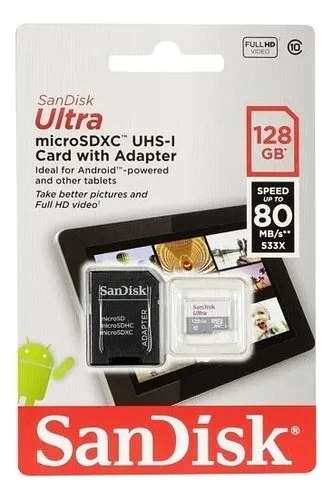 Memoria Microsd Sandisk Ultra 128gb 80 Mb/s Clase 10/w
