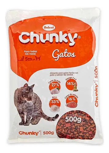 Alimento Chunky Gatos Salmón, Pollo Y Carne 500g X 20 Unid.