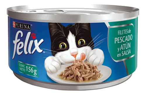 Comida Gato Felix Filetes Pescado Y Atún 156g X 24 Unid.